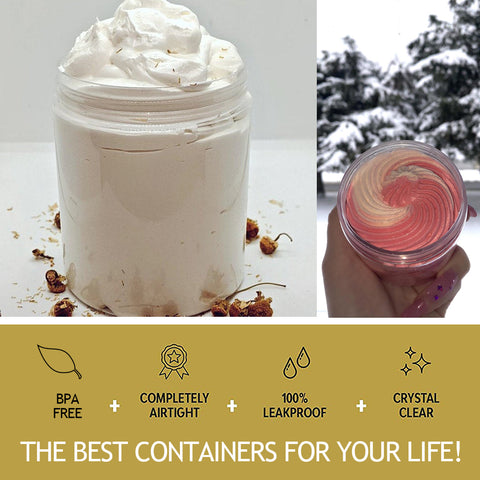 ✔【Wide Application】-Our 8oz containers with lids & 0.7oz sample jars are perfect for beauty products, storing mineralized makeup, eye shadows, lotions, lip gloss, scrubs, creams, ointments, acrylic powder, and other beauty aids. They are also suited to hold samples of teas, spices, cooking oils, herbs, medication, paints, small jewelry, and much more.